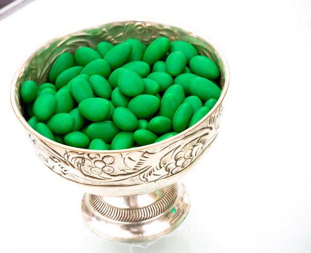 And the details... Jordan almonds in the same Kelly green were a beautiful, simple addition to the entire table.